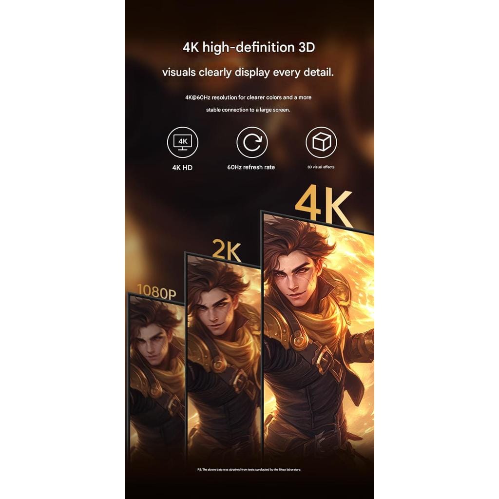 Stunning 4K@60Hz Resolution: Experience crystal-clear video with 4K Ultra HD (3840×2160) resolution at a smooth 60Hz refresh rate??four times the clarity of 1080p. Perfect for streaming, presentations, and gaming.
