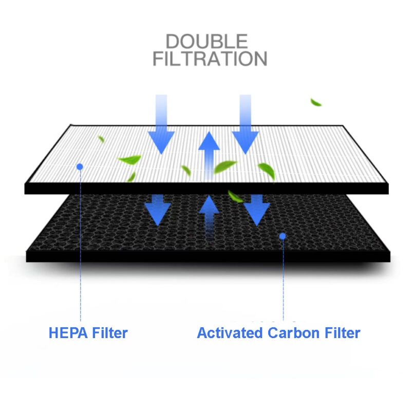 Our HEPA filter with activated carbon combines the power of high-efficiency particulate air (HEPA) filtration with the added benefit of activated carbon. This combination ensures the efficient removal of harmful pollutants, including formaldehyde, TVOC (Total Volatile Organic Compounds), odor, and other harmful gases. The activated carbon layer effectively captures and neutralizes these pollutants, providing you with cleaner and fresher air.