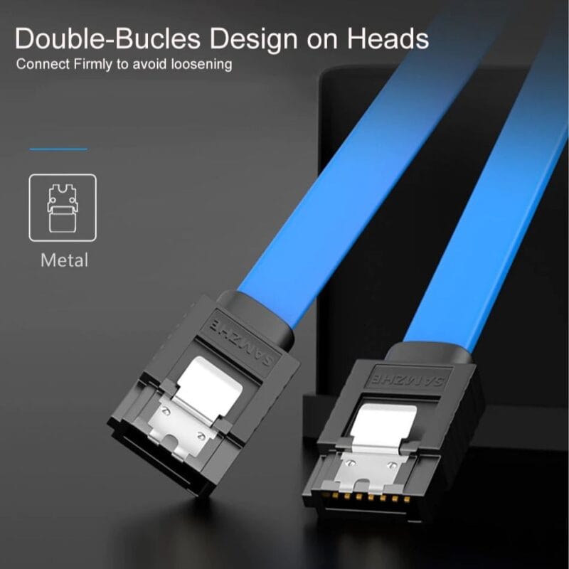 SAMZHE SATA III 6 Gbps Cable connects both newer SATA III and legacy SATA I, II drives to internal motherboards and host controllers, quickly upgrading your computer for expanded storage.