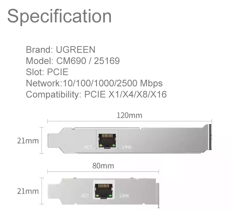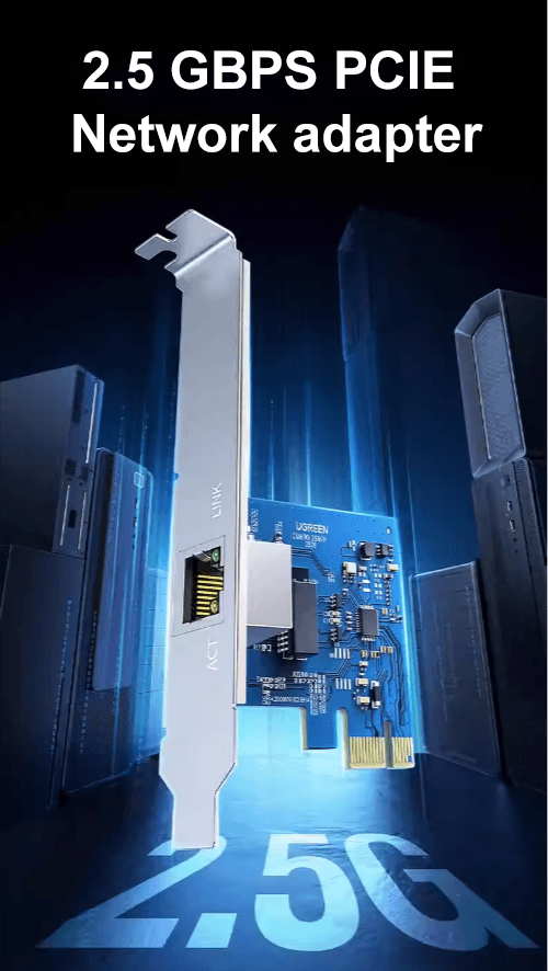 ?Experience lightning-fast network speeds with the UGREEN 2.5Gbps PCIe Network Adapter Card. This cutting-edge network card delivers exceptional performance for demanding applications such as online gaming, video streaming, large file transfers, and more.