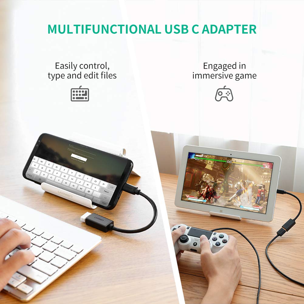 - USB C TO USB A: Convert USB-C port into a USB 3.0 port to connect flash drives, USB thumb drives, keyboard, wireless mouse, PS4 game controller, external hard drive etc. Enable android or windows usb type c phones or tablets work as PC host. NOTE: Please make sure your cell phone supports USB On-The-Go function before your purchase.
